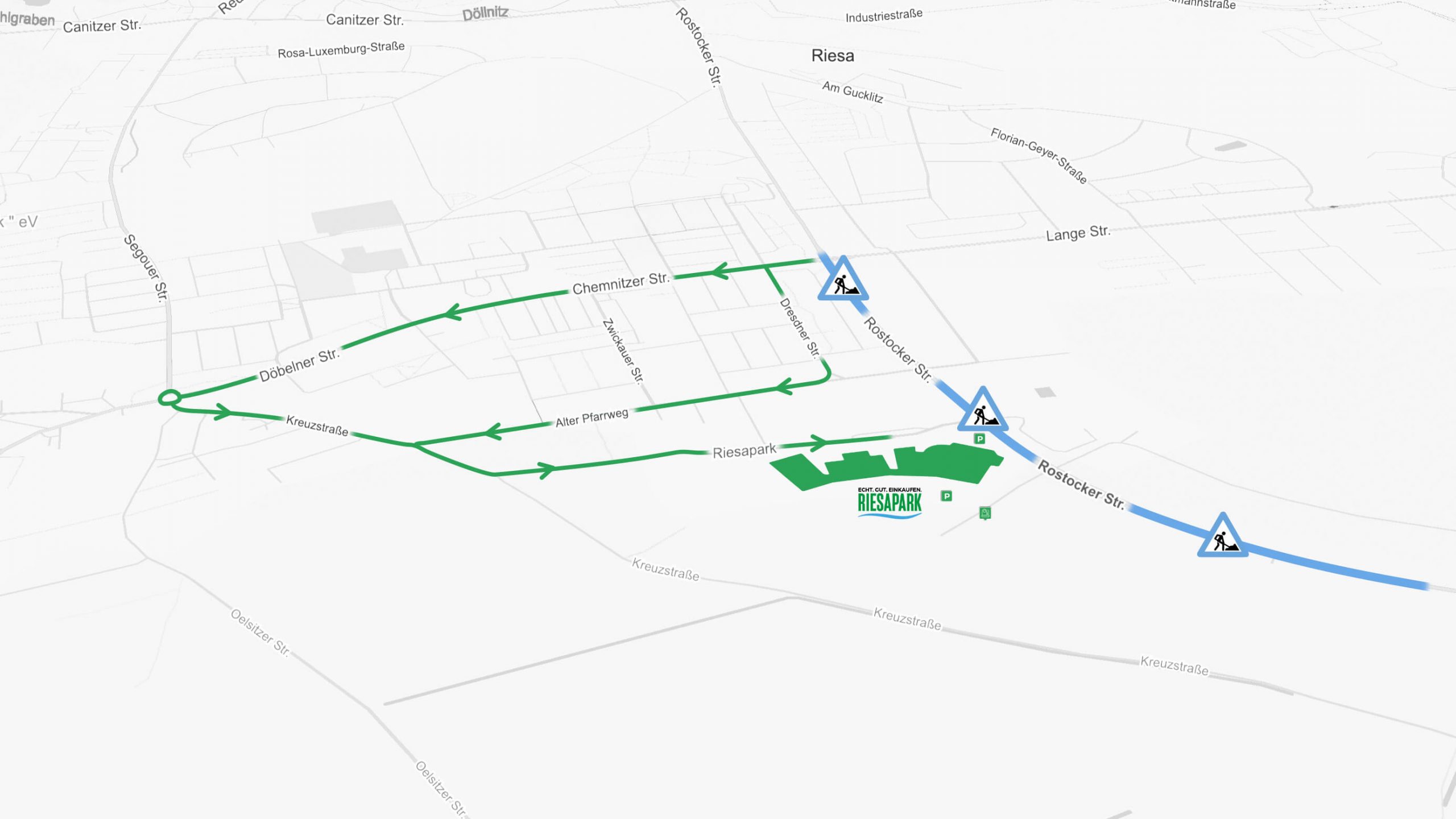 Selbstverständlich ist der RIESAPARK weiterhin gut erreichbar. Um Ihnen die Anfahrt so einfach wie möglich zu gestalten, empfehlen wir zwei alternative Routen: